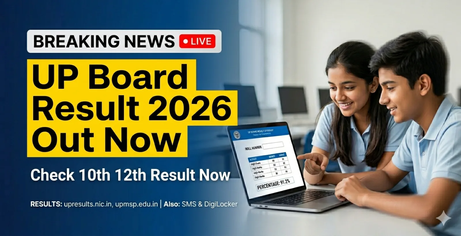 UP Board Result 2026 Declared Now – Direct link to Check Class 10 and 12 Result @ upmsp.edu.in