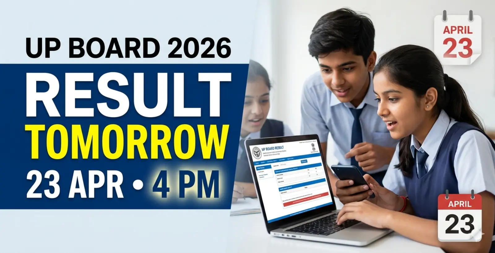 The longest wait for over 52 lakh students across Uttar Pradesh ends tomorrow. The Uttar Pradesh Madhyamik Shiksha Parishad (UPMSP) has officially confirmed that both the UP Board 10th Result 2026 (High School) and the UP Board 12th Result 2026 (Intermediate) will be declared on April 23, 2026 at 4:00 PM. The announcement will come via a press conference at the board’s headquarters in Prayagraj, following which both result links will be activated simultaneously on upmsp.edu.in and upresults.nic.in.